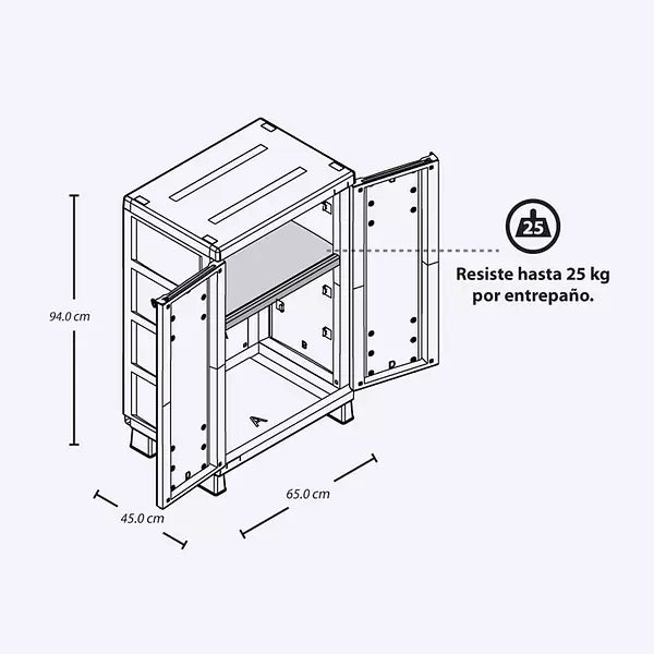 El Armario Plástico Infantil Textura Madera es la solución perfecta para mantener organizados los espacios de los más pequeños del hogar. Su diseño con apariencia de madera aporta calidez y combina funcionalidad con un estilo encantador. Equipado con 2 entrepaños ajustables que soportan hasta 25 kg cada uno, ofrece gran capacidad de almacenamiento. Además, es fácil de armar, mover y limpiar, ideal para adaptarse al ritmo diario de las familias.
