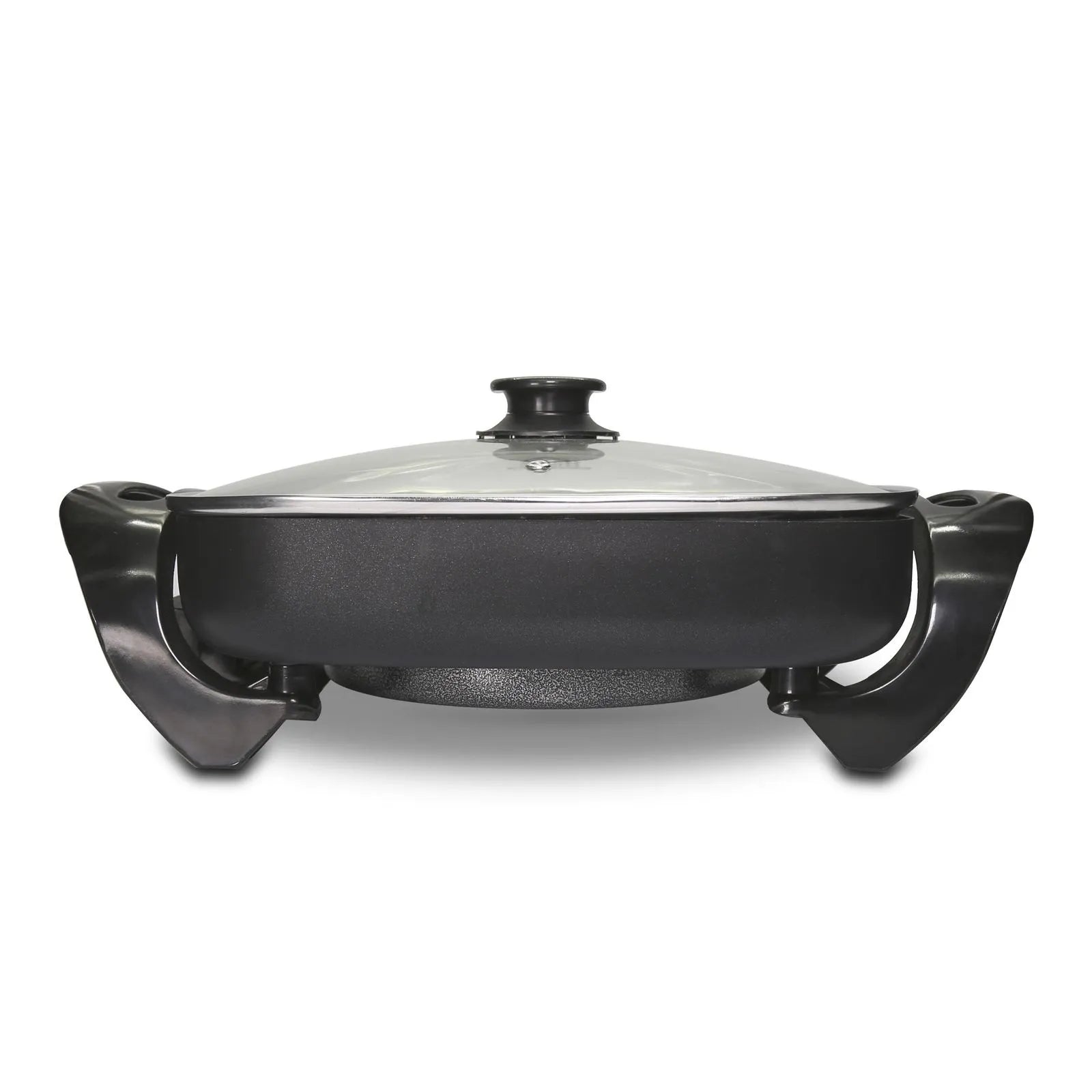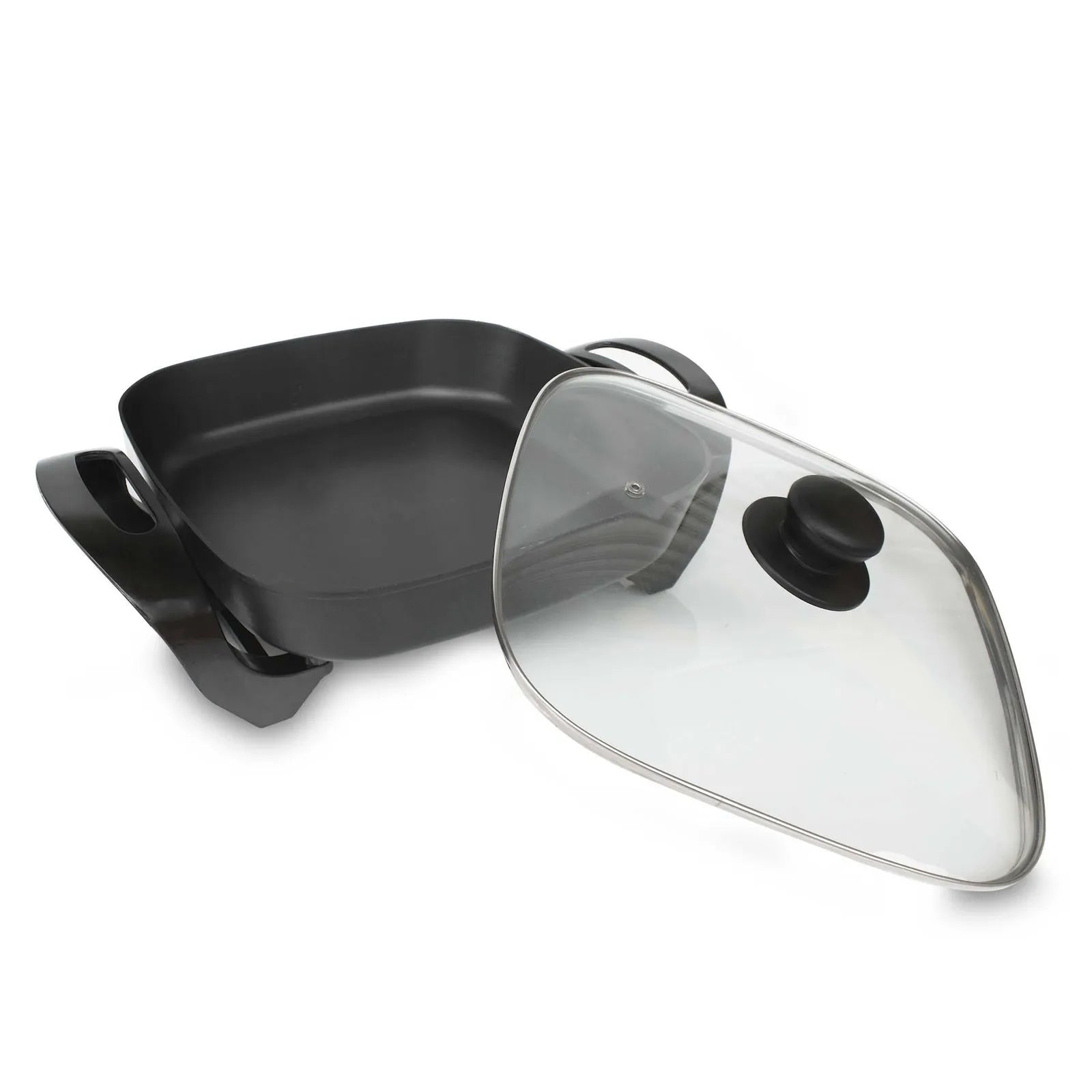 Su recubrimiento antiadherente evita que los alimentos se peguen y facilita la limpieza. El control de temperatura regulable hasta 250°C te da la libertad de freír, asar, saltear o gratinar, siempre con el punto exacto de cocción. Incluye tapa de vidrio templado que te permite vigilar el proceso de cocción, asas frías al tacto y una base antideslizante que asegura estabilidad en cada uso.
