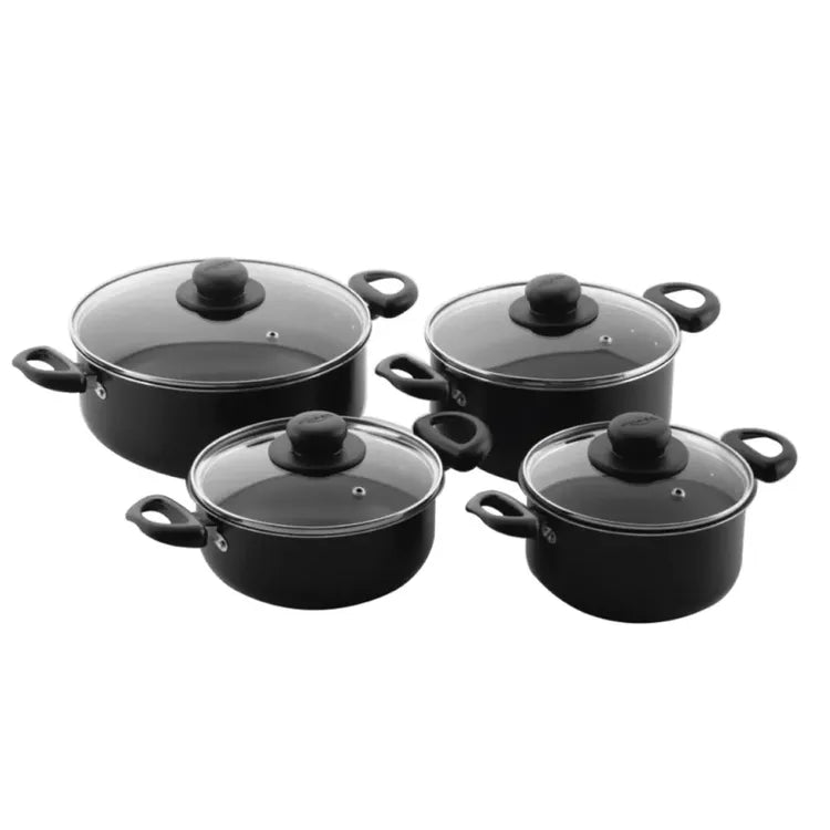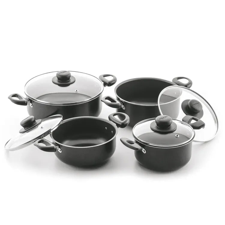 Fabricadas con cuatro capas de recubrimiento antiadherente, estas ollas garantizan una cocción uniforme y evitan que los alimentos se peguen, facilitando la limpieza y prolongando su durabilidad.