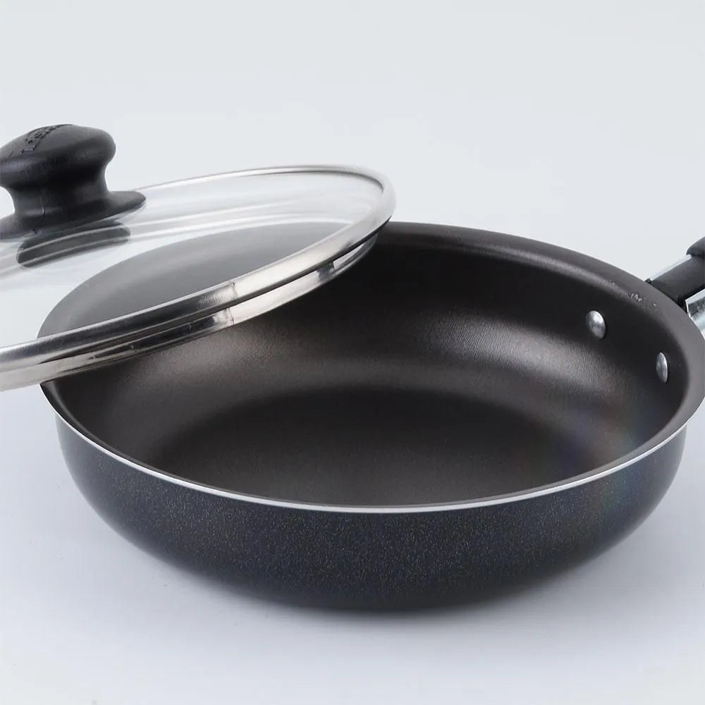 Características: Cacerola con cuerpo de aluminio antiadherente y mango en baquelita, ideal para preparar comidas saludables y bajas en grasa. Fondo grafilado para mayor estabilidad al cocinar y mejor distribución del calor en la base.