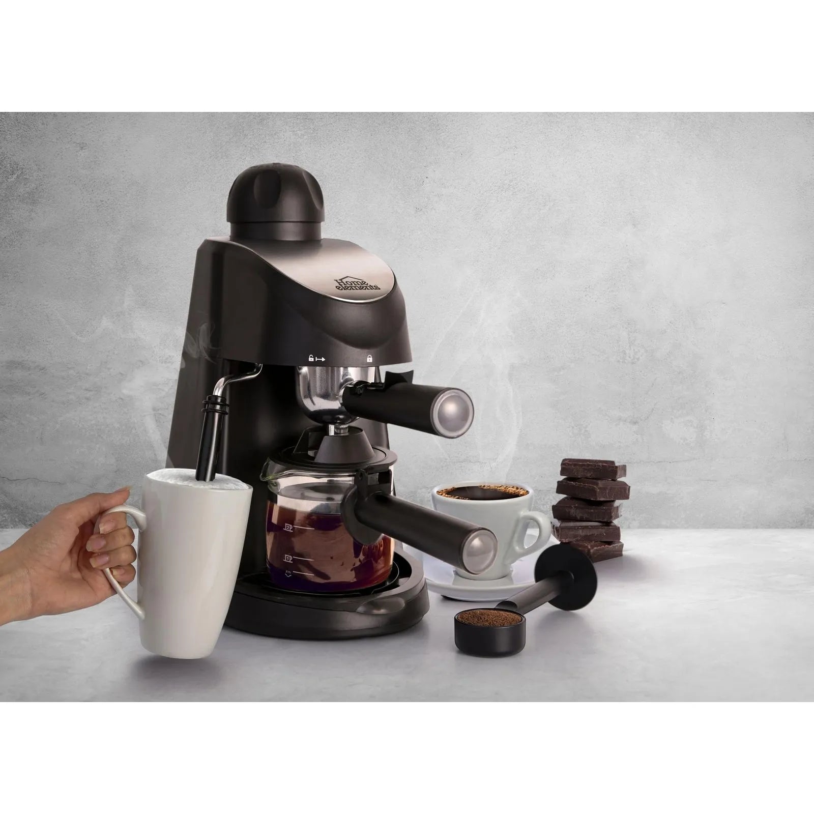 ¡Haz de tu cocina tu cafetería favorita! Con la Cafetera CoffeeHome de Home Elements disfruta de espressos intensos y capuchinos cremosos en tan solo 5 minutos. Su diseño compacto y moderno se adapta a cualquier espacio, mientras que su potencia de 800W asegura un café con cuerpo, aroma y sabor de calidad profesional.