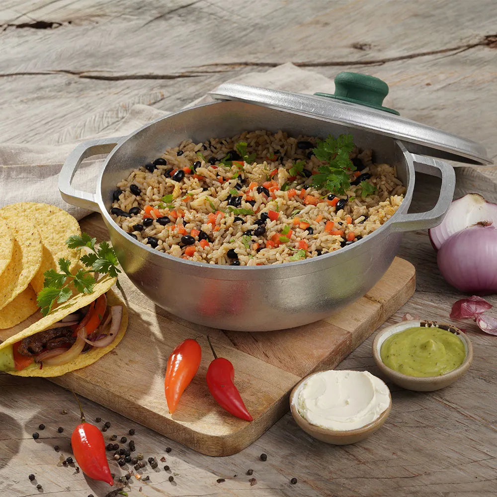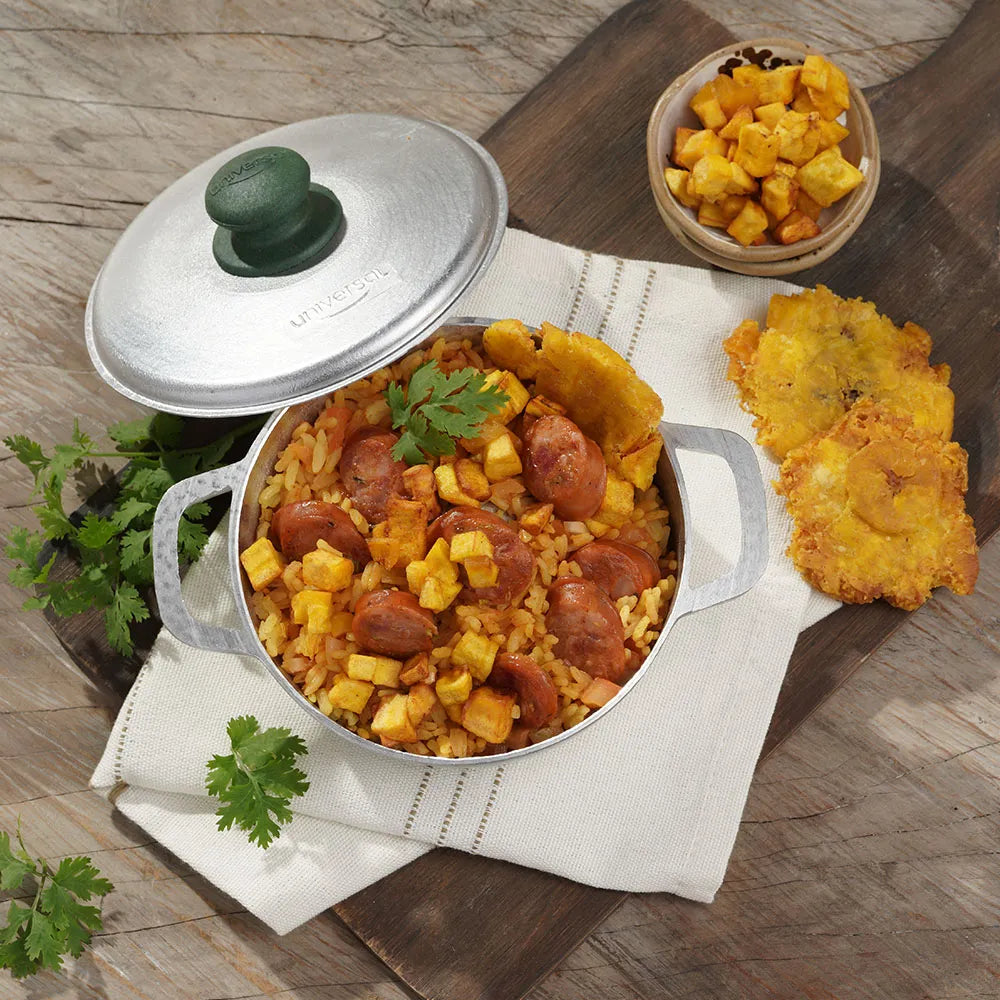 Prepara tus recetas colombianas favoritas en nuestro caldero fundido con pomo ensamblado y tapa fundida de Hogar Universal. Su material resistente garantiza una distribución uniforme del calor, ideal para cocinar con el sabor tradicional que tanto te gusta.