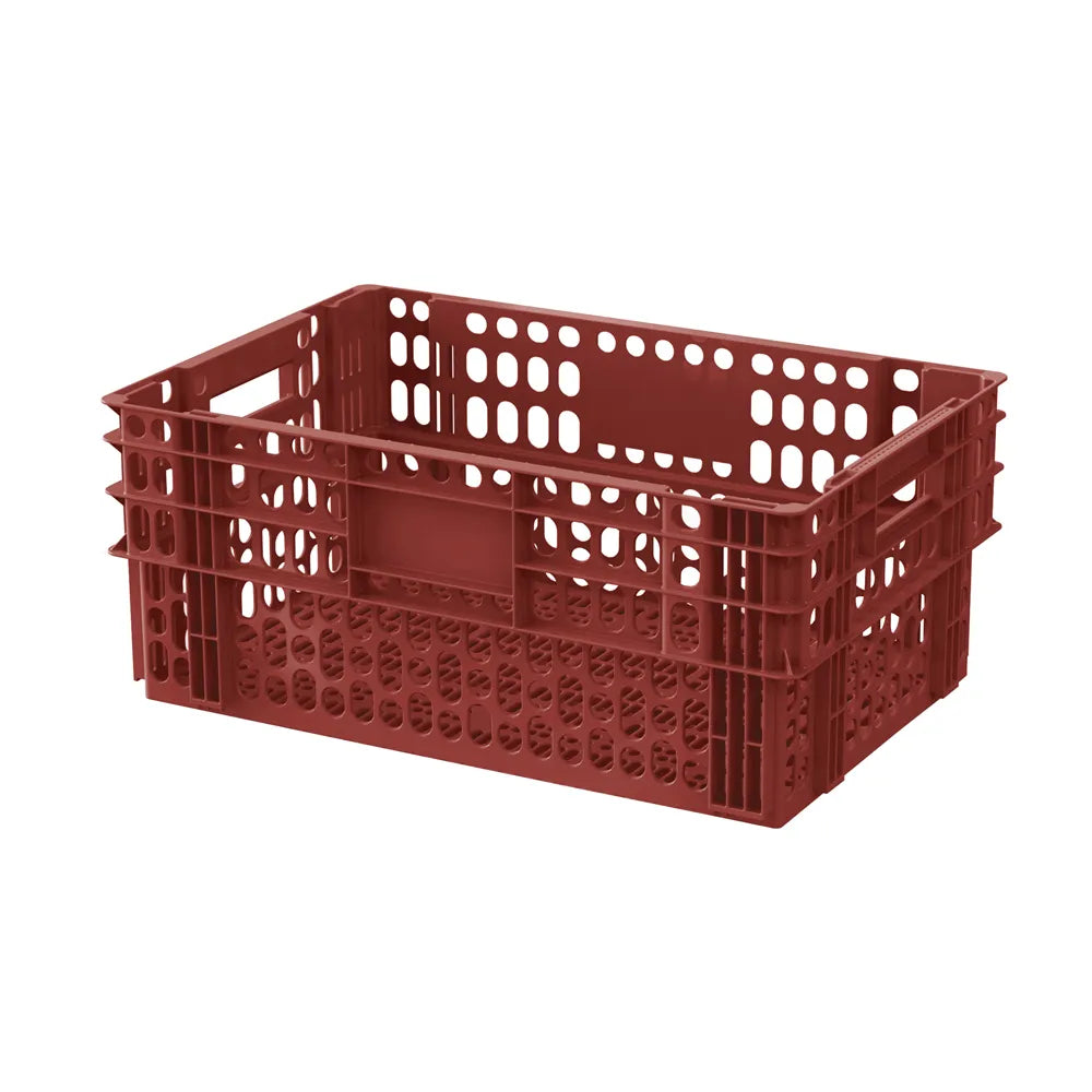 Caja plástica fabricada en polietileno de alta densidad. Es reutilizable, retornable y 100% reciclable, ideal para uso en diversos sectores industriales gracias a su diseño apilable que brinda excelente estabilidad al arrume.