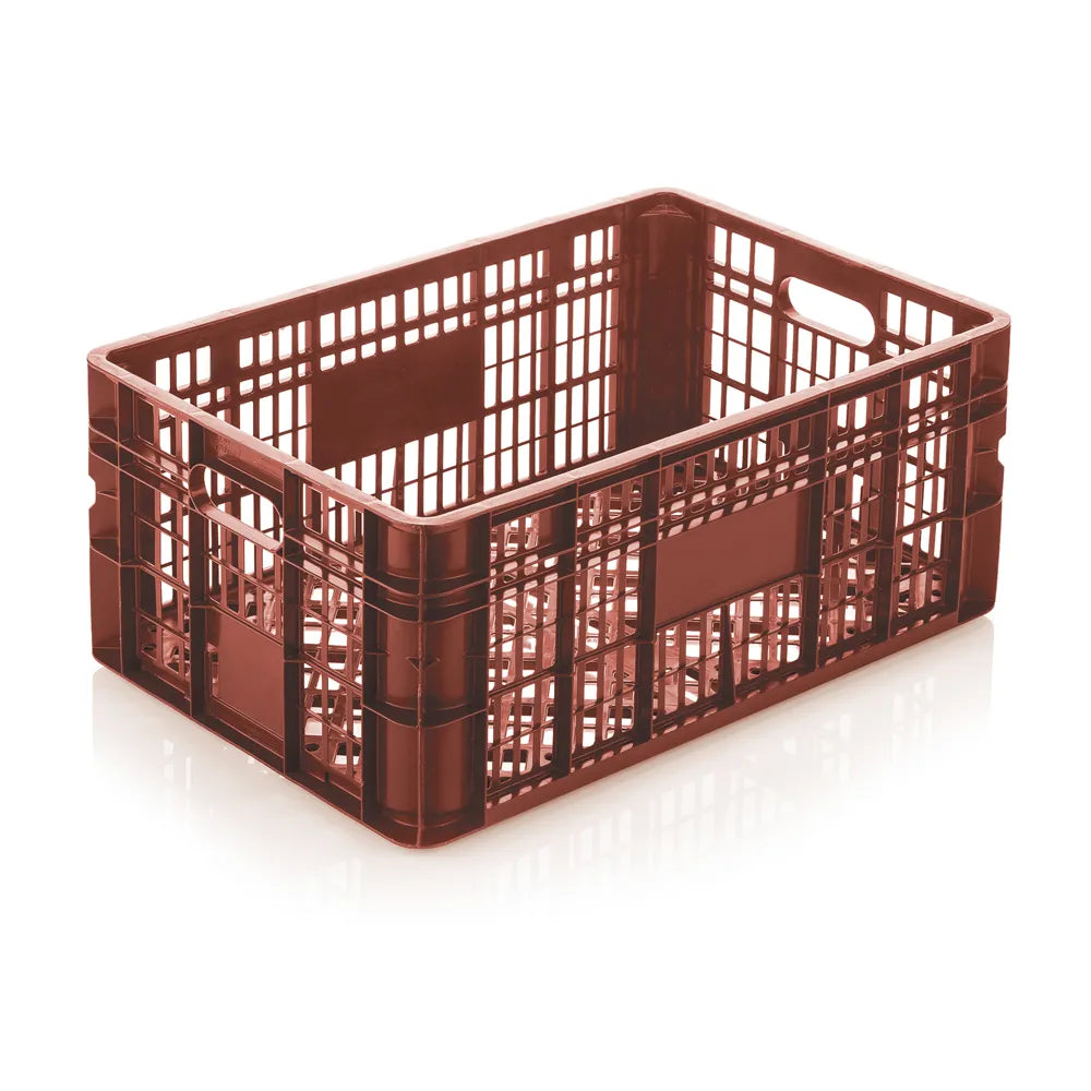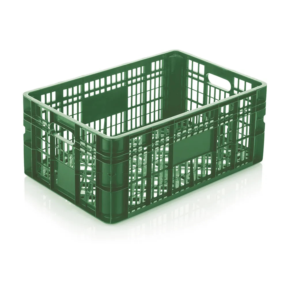 Caja fabricada en polietileno de alta densidad (PEAD), reutilizable, retornable y 100% reciclable. Su diseño apilable garantiza excelente estabilidad al arrume, aportando eficiencia en producción, almacenaje, transporte y distribución.