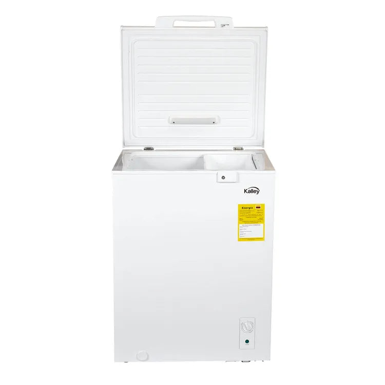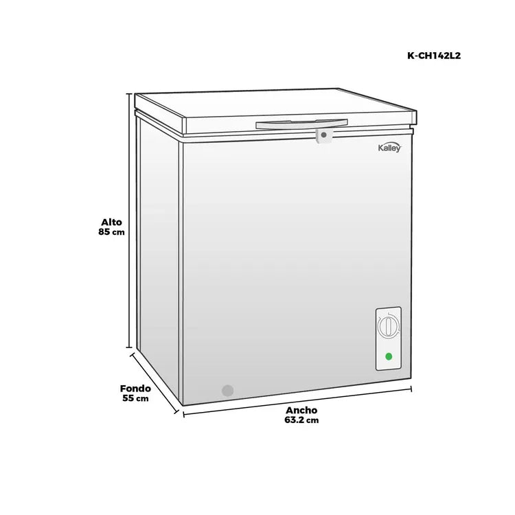 Este congelador horizontal Kalley cuenta con una capacidad de 142 litros ideal para almacenar tus alimentos y mantenerlos frescos por más tiempo.