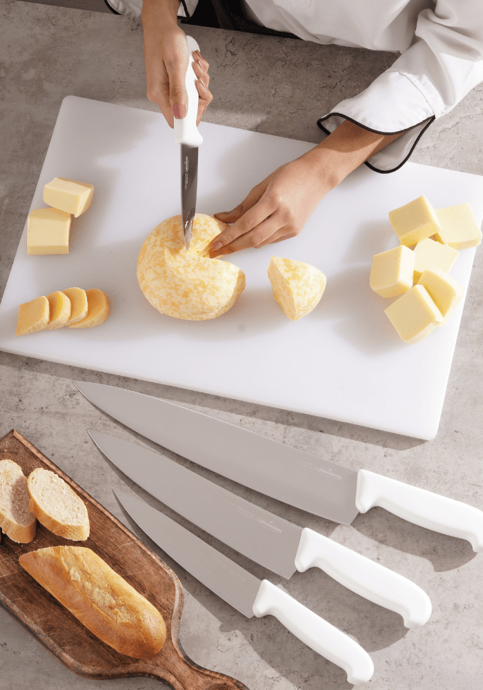 ¿Quieres sentir la precisión de un profesional cuando estés haciendo cortes de lácteos y panadería? Descubre la nueva línea de cuchillos profesionales Universal PRO, creada para chefs y expertos del sector HORECA (Hoteles, Restaurantes y Cafeterías).