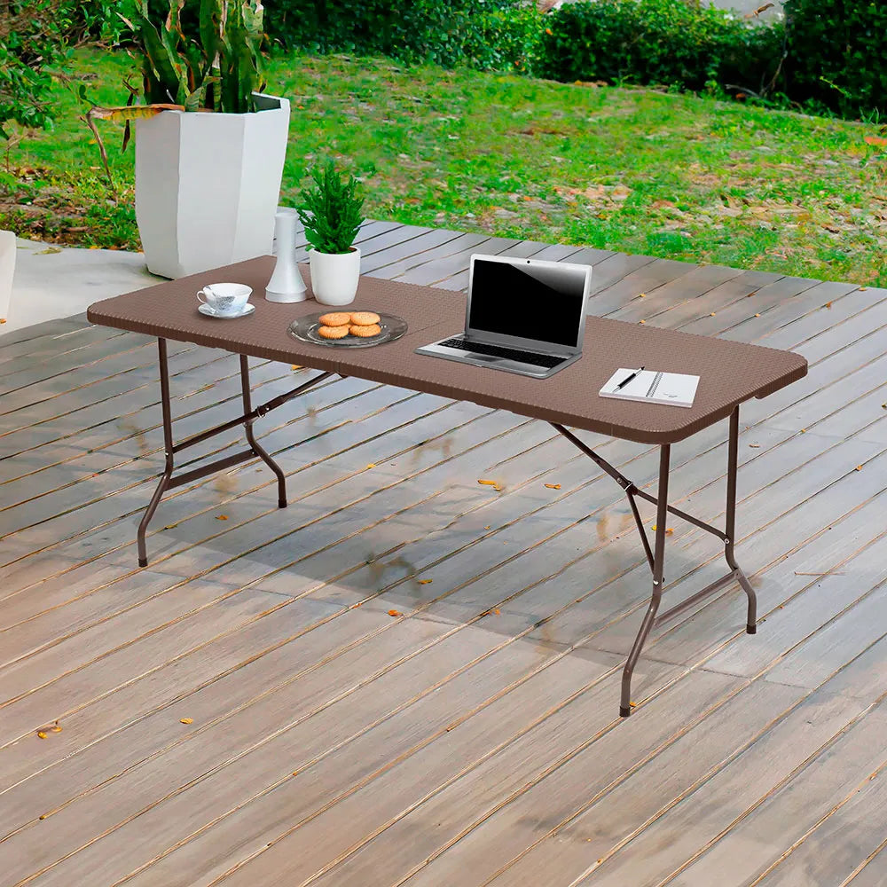 La Mesa Banquetera Tipo Rattán es la opción perfecta para organizar tus eventos y reuniones con elegancia. Con una amplia superficie para acomodar a varios invitados y un diseño plegable que facilita su transporte y almacenamiento, es ideal para interiores y exteriores. Fabricada con materiales duraderos y resistentes, combina funcionalidad, estilo y comodidad, siendo perfecta para banquetes, fiestas y reuniones familiares.