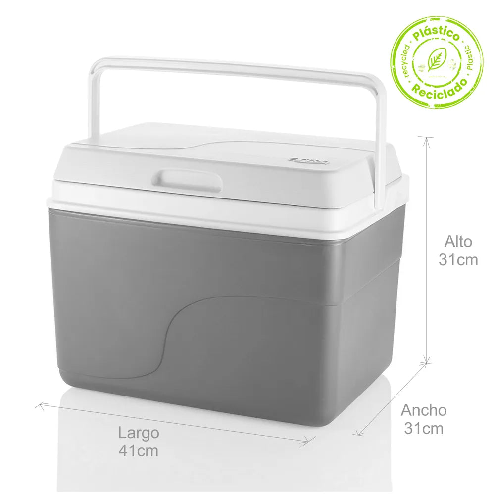 La nevera portátil insulada de 22 litros es la solución ideal para mantener tus alimentos y bebidas frescos en campamentos, viajes o planes familiares en el parque. Fabricada con material recuperado, combina sostenibilidad, resistencia y funcionalidad.