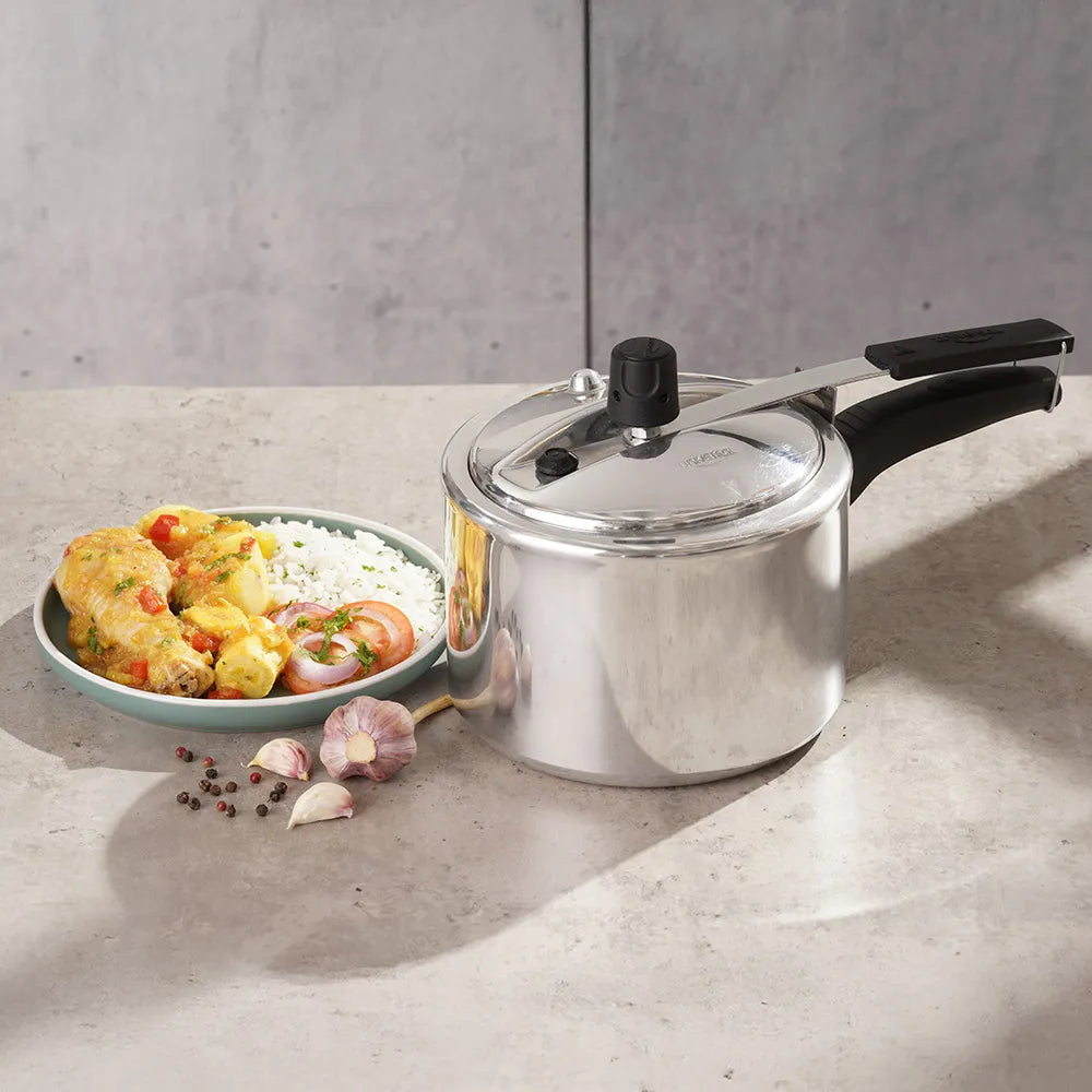 La Olla a Presión Esencial 3L está diseñada para hacer tu cocina más rápida, práctica y eficiente. Fabricada en aluminio de alta calidad, garantiza una excelente distribución del calor para una cocción uniforme y resultados perfectos en menos tiempo.
