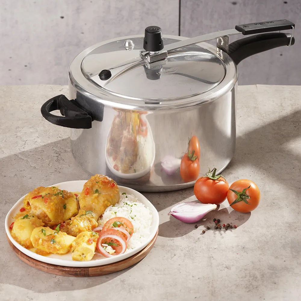 La Olla a Presión Esencial 8L está diseñada para hacer tu cocina más rápida, práctica y eficiente. Fabricada en aluminio de alta calidad, garantiza una excelente distribución del calor para una cocción uniforme, ideal para preparar comidas familiares o en grandes porciones.