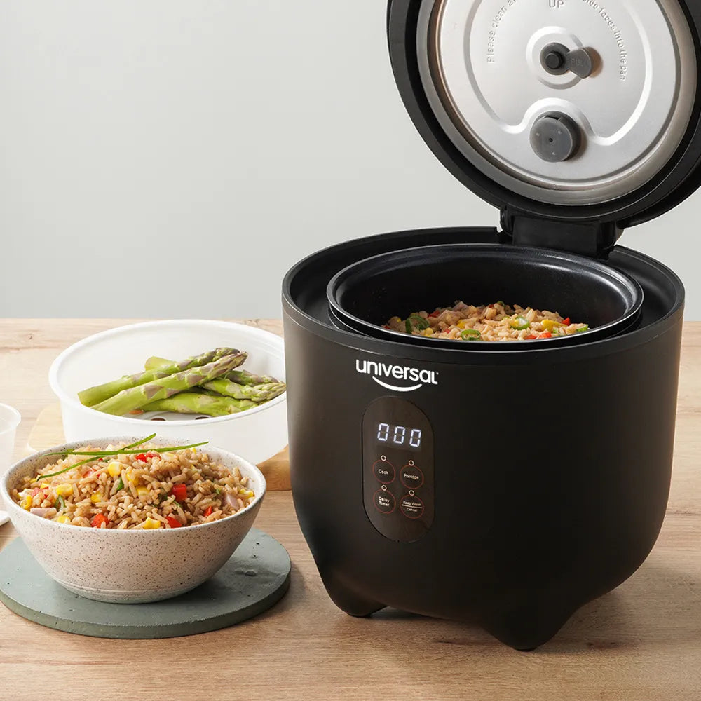 Disfruta de preparaciones más prácticas y rápidas con la Arrocera Multifuncional Easy Cook Universal, donde la tecnología y el sabor se encuentran en un solo producto.