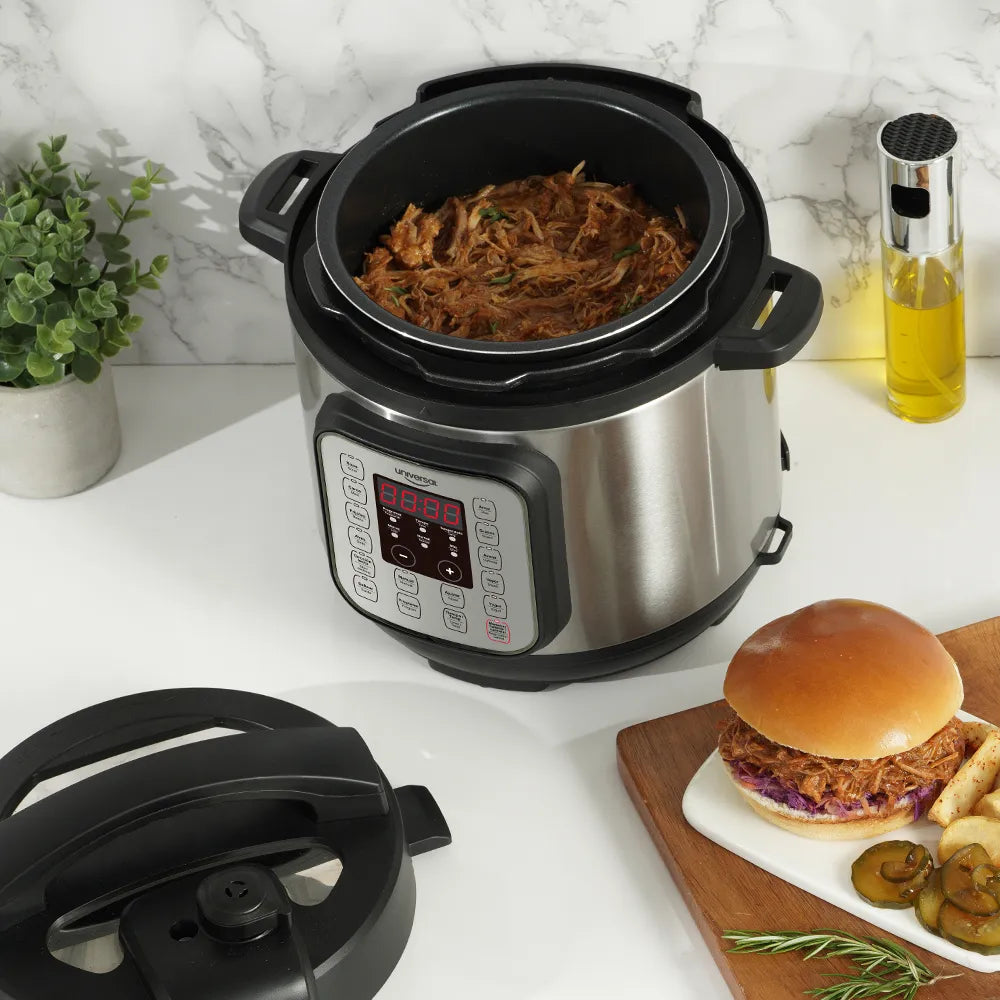 Con solo presionar un botón, podrás saltear, hacer yogur, dorar, cocinar a presión, al vapor, freír, hornear y mucho más. Su tecnología avanzada te permite preparar una gran variedad de platos de forma segura y eficiente, optimizando el tiempo sin perder sabor.