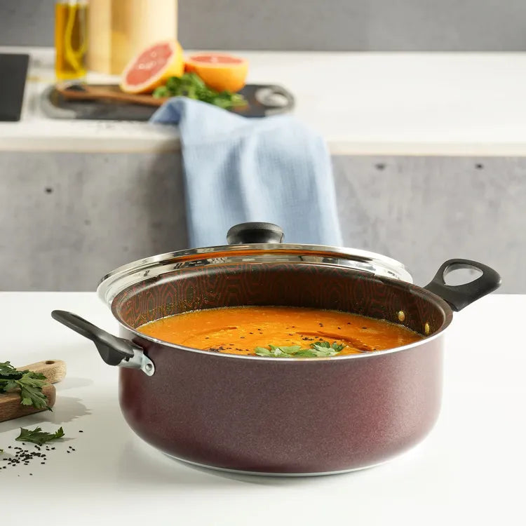 Su diseño moderno y sus asas en baquelita resistentes al calor garantizan seguridad y comodidad al cocinar. Además, su fondo grafilado proporciona una excelente estabilidad y una distribución uniforme del calor, logrando una cocción eficiente y resultados deliciosos.