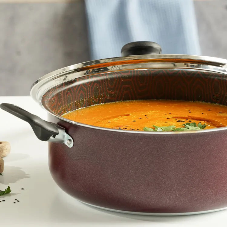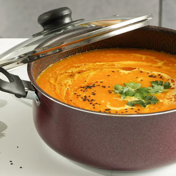 Con nuestra olla de 24 cm tus alimentos conservarán sus nutrientes y nada se pegará gracias a su revestimiento antiadherente de cinco capas. Fabricada en aluminio de alta resistencia bajo estrictos controles de calidad, ofrece un desempeño confiable y duradero en cada preparación.