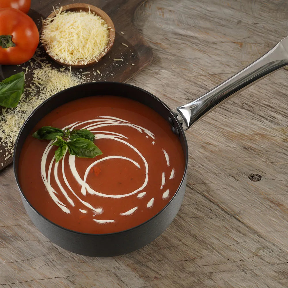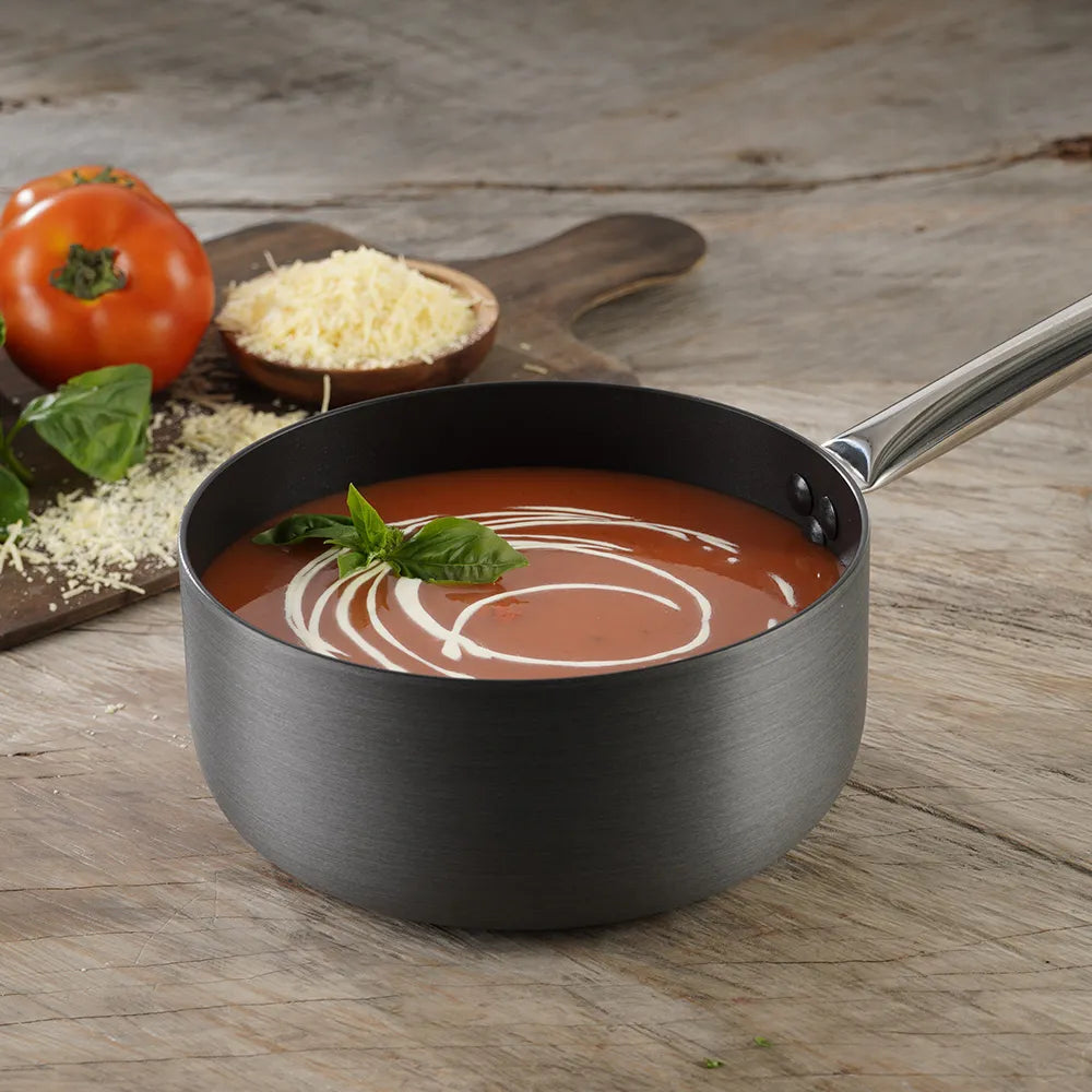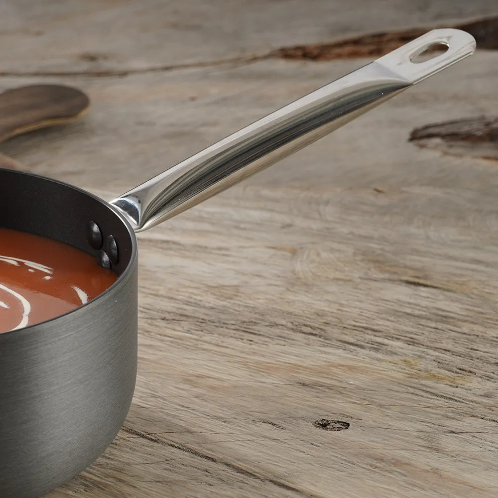 Fabricado en aluminio anodizado duro, resiste altas temperaturas y un uso frecuente, garantizando durabilidad y una excelente resistencia a la abrasión de hasta 23.000 ciclos. Además, su mango de acero inoxidable ofrece un agarre cómodo y seguro, mientras que el interior antiadherente asegura una cocción uniforme y una limpieza sencilla.