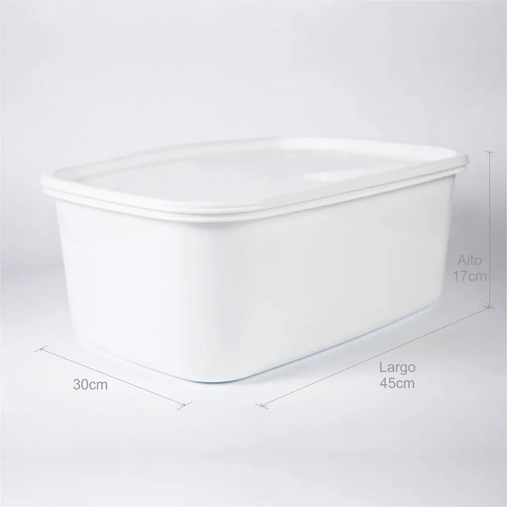 Este recipiente plástico rectangular de 16 litros en color blanco es ideal para almacenar grandes cantidades de alimentos en tu congelador. Su diseño apilable permite ahorrar espacio de manera eficiente, mientras que su capacidad es perfecta para organizar todo tipo de productos, desde carnes hasta frutas y vegetales. Fabricado en material de alta calidad, es resistente y duradero, soporta temperaturas de congelación sin perder su forma ni funcionalidad. Además, su tapa hermética ayuda a preservar la frescura de los alimentos y evitar la pérdida de sabor.