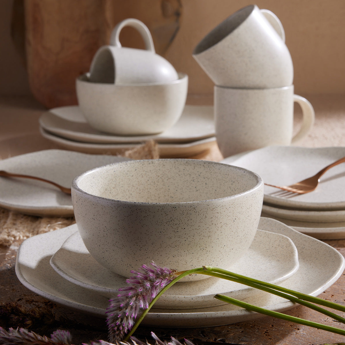 Las formas irregulares se toman las mesas para hacer de ellas el centro de atención. La vajilla Orión está inspirada en la cerámica artesanal y en volver al origen con formas fluidas y orgánicas que capturan la esencia de las tradiciones alfareras.