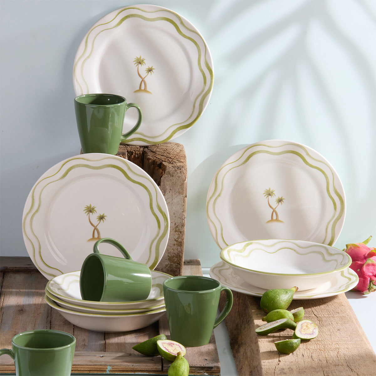 Una experiencia que te transporta a la fresca sensación de la brisa marina. Con trazos pintados a mano y un diseño artesanal, esta vajilla es la mezcla perfecta de autenticidad y calidez. Su minimalismo y tonos claros inyectan una dosis refrescante a tu mesa, creando un ambiente relajado que te lleva directo a las playas tropicales.