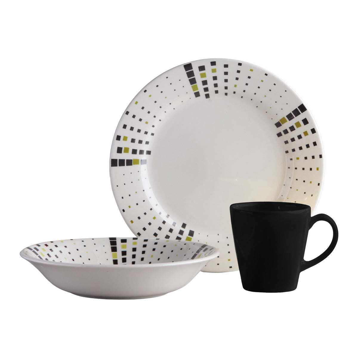 Un diseño que abraza un enfoque futurista y se alinea con los temas de tecnología e innovación, la Vajilla Malaya de 4 puestos, compuesta por 12 piezas, crea un efecto óptico que la convierte en una propuesta verdaderamente vibrante y revolucionaria.