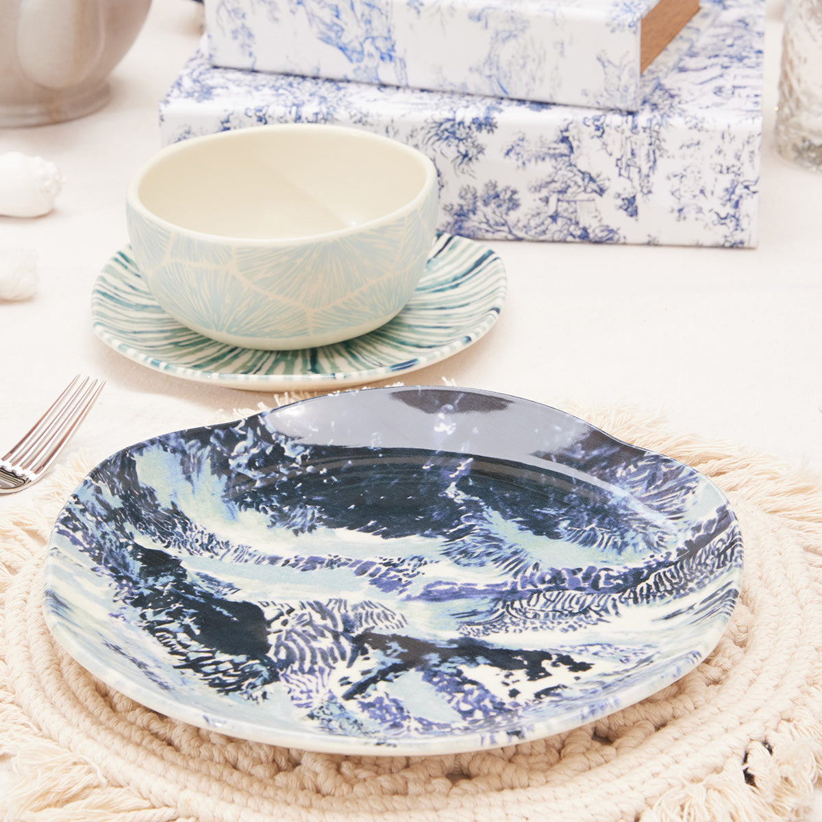 Los tonos vibrantes y las formas orgánicas de la Vajilla Atlantia capturan la esencia del océano, evocando el movimiento de las olas y la frescura de la brisa marina. Su diseño en azules profundos aporta dinamismo a la mesa, creando una experiencia visual y sensorial única que transforma cada comida en un instante memorable.