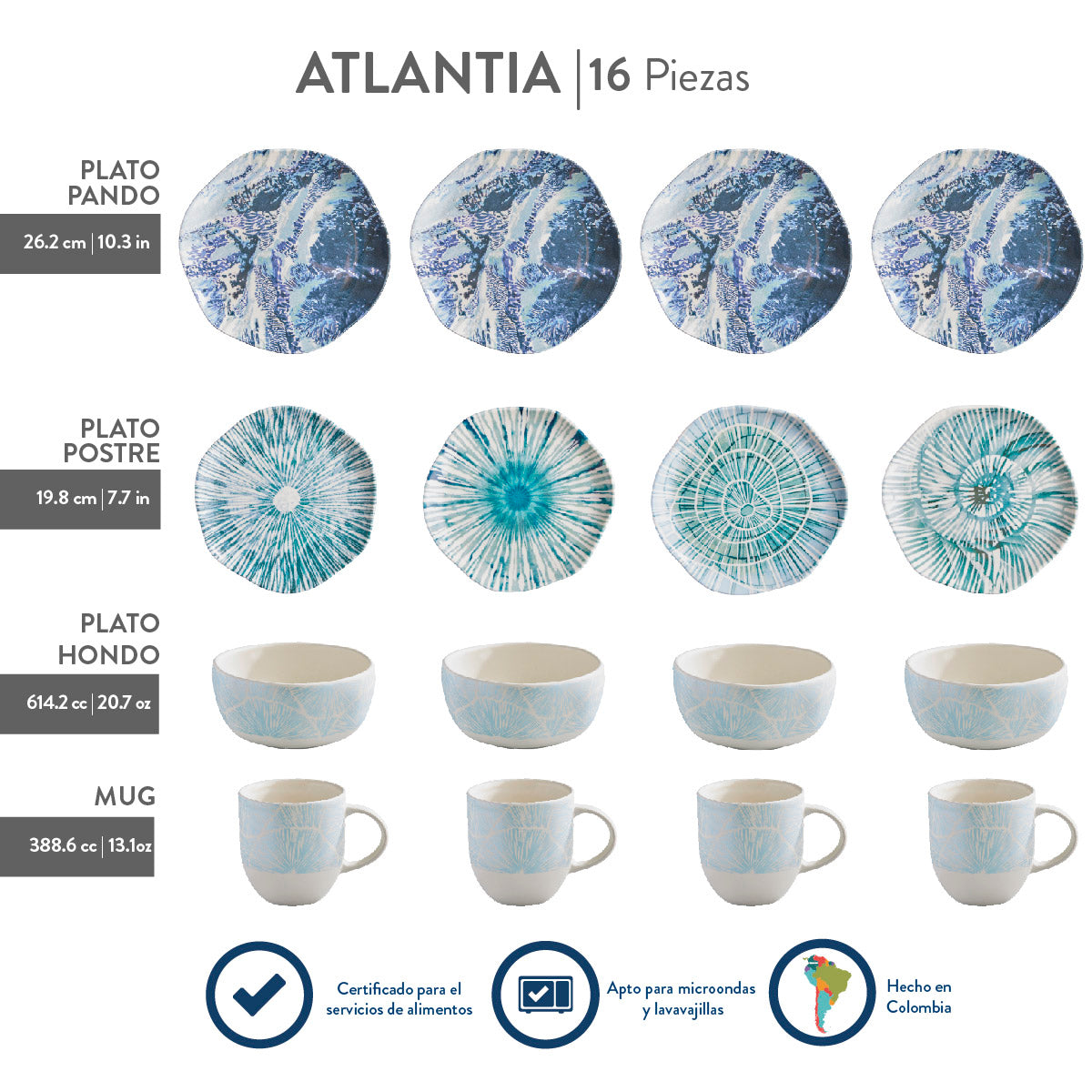 Con Atlantia, cada presentación gastronómica se convierte en una obra de arte. Sus tonos profundos y vibrantes evocan el mar abierto, aportando frescura, movimiento y elegancia a cualquier ocasión.