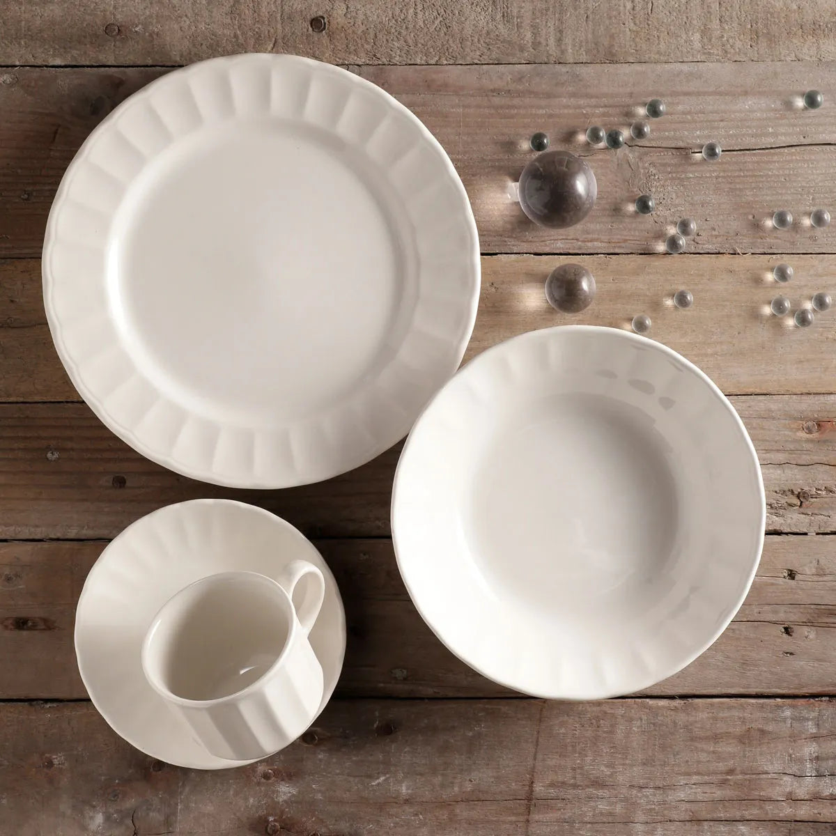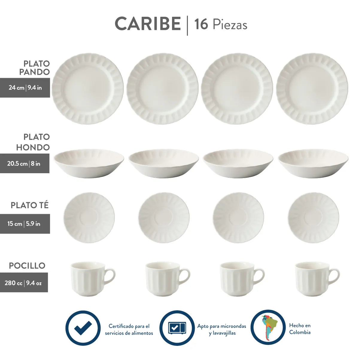 Caribe es una vajilla orgánica y luminosa, que evoca la naturaleza gracias al relieve que lleva en su borde. Aunque es una propuesta muy cálida y limpia, conserva en todo momento la elegancia.