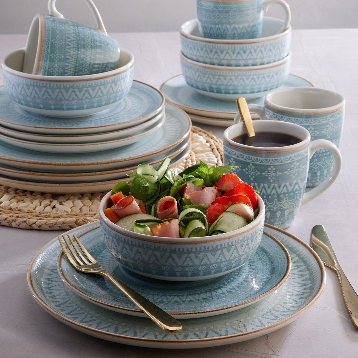Esta vajilla está inspirada en las grafías africanas y fusiona el arte manual con texturas étnicas. Vajilla pintada a mano, manteniendo siempre el encanto de lo artesanal. Las texturas, formas étnicas y colores sutiles te llevarán de regreso al origen, aquel lugar donde todo inició.
