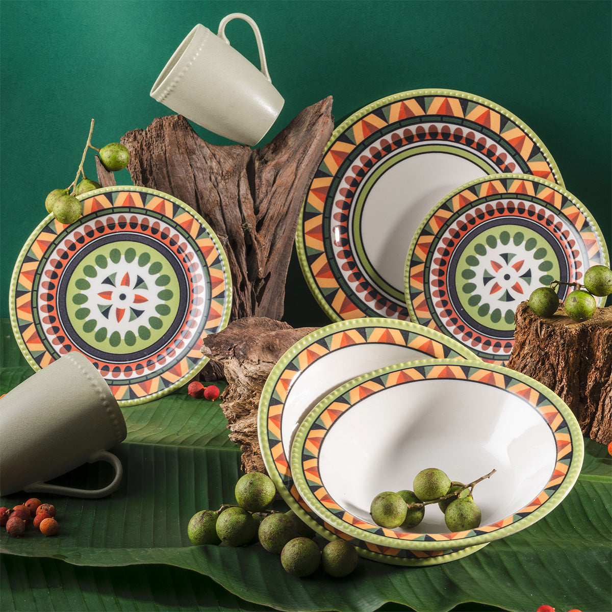 Un legado cultural en colores y formas que nos invita a experimentar la exuberancia de los tonos terrosos y los patrones geométricos, que se unen en una danza armoniosa transformando tu mesa en un deleite visual. ¡Celebra la conexión con una herencia cultural rica y diversa!